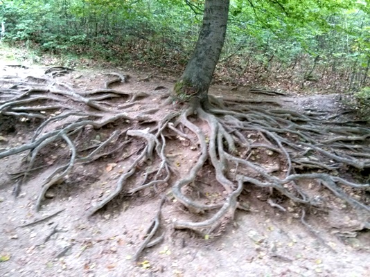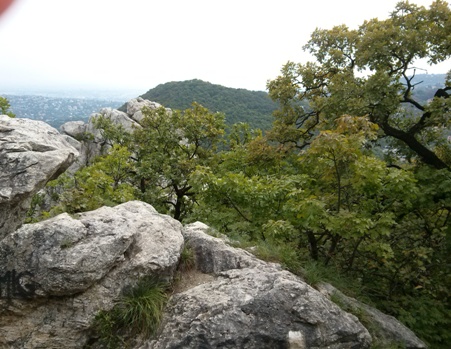 Innen visszafordulva ismét a Zöld háromszög jelzést kellett követni lefelé. Meglehetősen meredek út vezetett le a Tündér -szikla irányába.