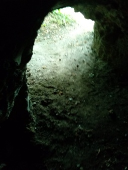 Nekiindultam hát, immár az ismerős, meredek útnak lefele. Leérvén a műútnál szalagozás segítette a túrázókat, s lassan elértük a János-hegyi barlangot. Ez igazából egy kicsi, átjáróbarlang, melyen át lehetett menni.
