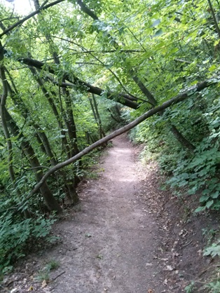 A sziklától lefelé haladva szép zöld úton haladtam, melyet néha egy kis akadály keresztezett: